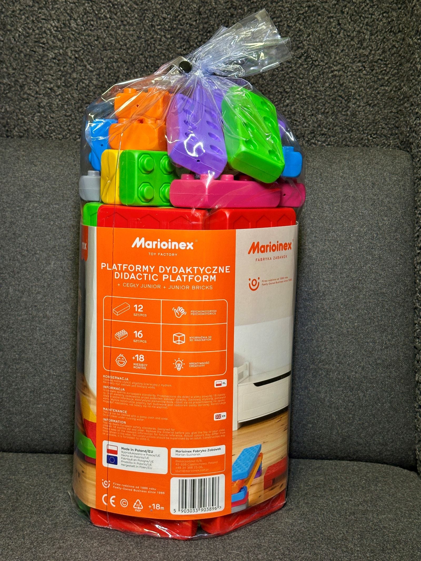 Låt barn bygga, balansera och leka med Junior byggklossar med balansplatta 28 st från Marioinex – ett färgsprakande set som bjuder in till både kreativt skapande och aktiv rörelselek. Klossarna är lite större, lätta att hantera och enkla att sätta ihop, vilket gör dem perfekta för både små och lite större byggare.