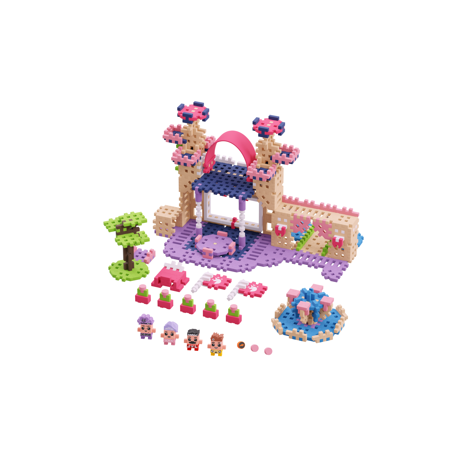 Här får barn bygga två höga torn med flaggor, fontän och massor av fantasifulla delar som gör sagan levande. Den rika mängden bitar uppmuntrar till kreativitet och magiska äventyr där fantasin får styra.